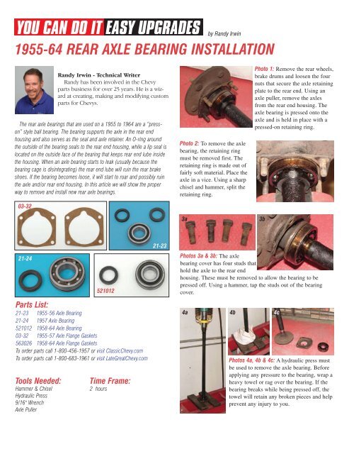 1955 64 Rear Axle Bearing Installation Eckler S Classic Chevy